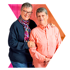 Kim (left), care partner of Amy, and Amy (right), real patient with TD